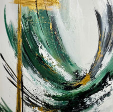 Acrylic paints, texture paste, palette knife technique, gold leaf;